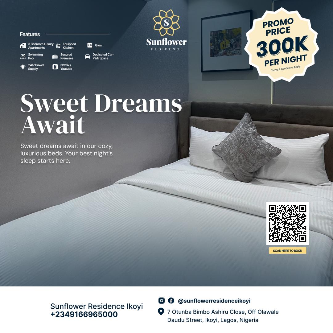 Check-in at Sunflower Residence Ikoyi begins at 14:00 and check-out is by 12:00. Early check-in and late check-out may be available upon request, subject to availability. Please contact the hotel directly to arrange.